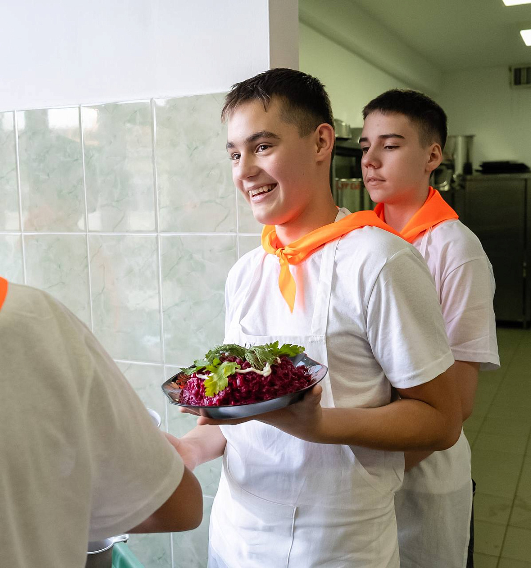 Наши повара с радостью готовят для детей вкусные, полезные и сытные блюда, чтобы у ребят всегда было достаточно сил для новых открытий, побед и весёлых перемен.